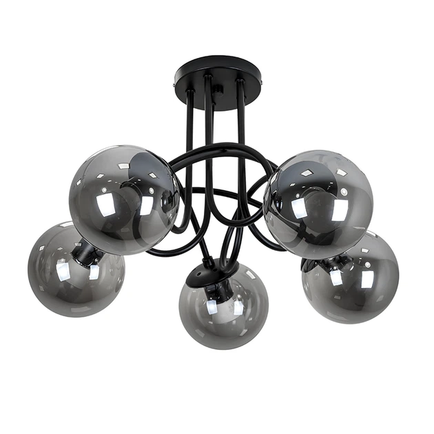 Підвісна люстра на стрижні Levistella 761S1005F-5 BK+CLWH металева з 5 скляними плафонами Чорний (134-16-LVS4411)