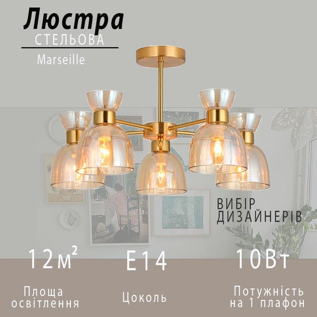 Люстра класична Ardero BL1250-2 Marseille на 5 плафонів E14 золота (1250-2)