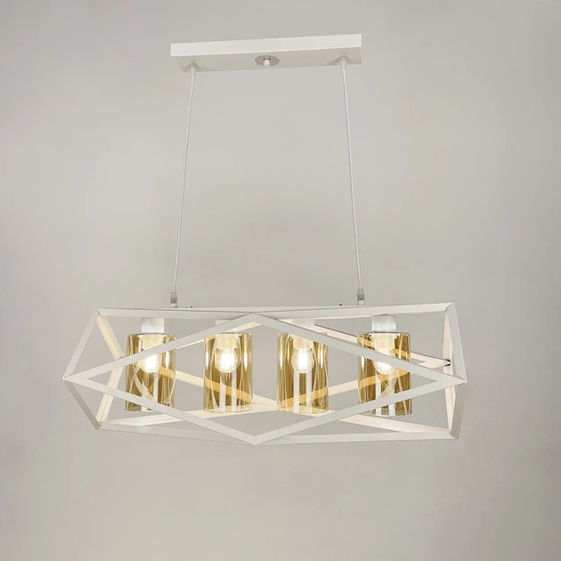 Підвісна люстра в білому корпусі з янтарними плафонами Line.F 12172/4