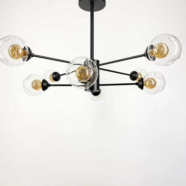 Люстра-молекула у чорному кольорі корпусу з 8 подвійними плафонами | Line F | Арт. 5033/8