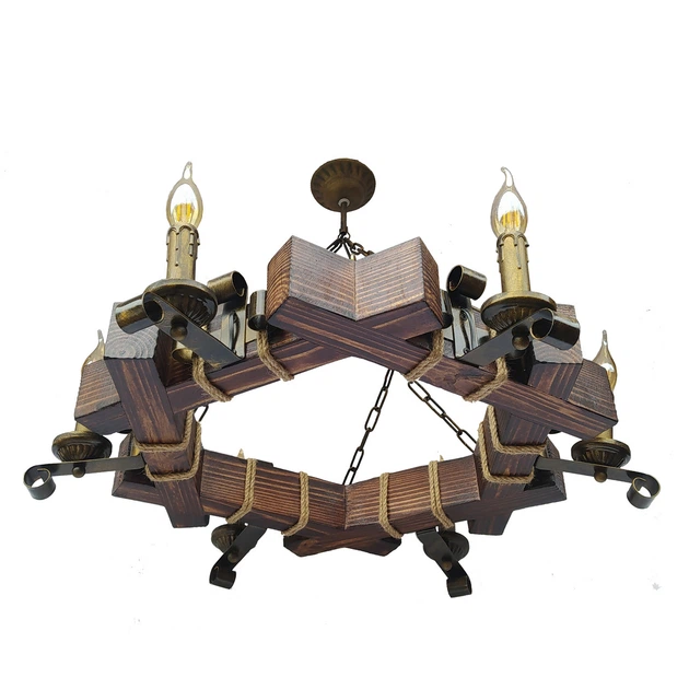 Дерев'яна люстра на 6 факелів