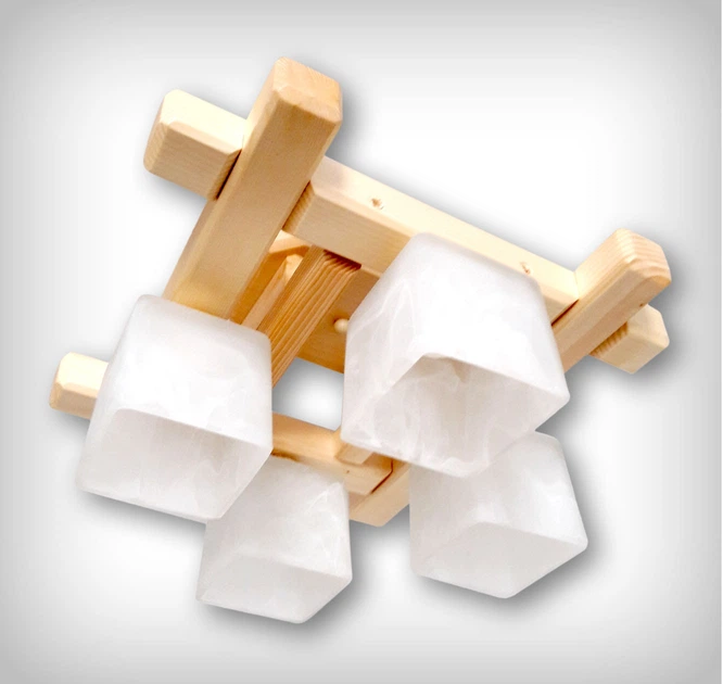 Дерев'яна стельова люстра світильник в скандинавському стилі на 4 плафони в спальню кухню кабінет передпокій кімнату 40x40 К