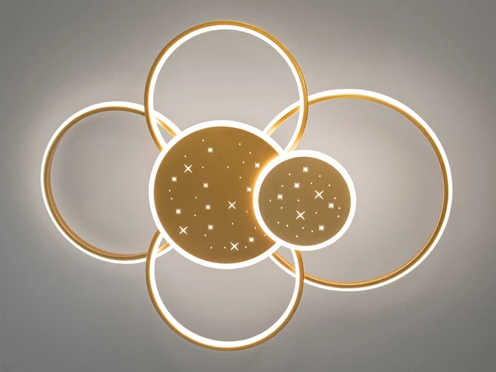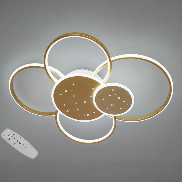 Стельова світлодіодна люстра 115W з пультом Diasha з розсіювачами-кільцями 3200K/4100K/6500K золота IP20