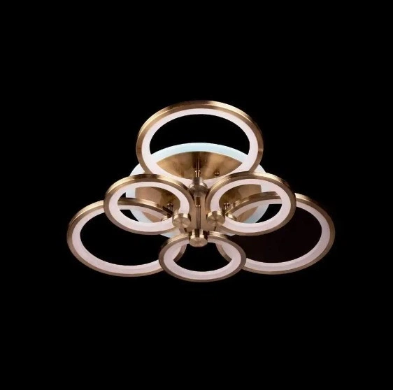 Люстра світлодіодна з 6 бронзових кіл з пультом та різнобарвним підсвічуванням для спальні SL-5332/3+3 AB+RGB