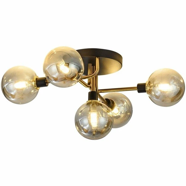 Люстра стельова Valeso N6621/8 з вісьмома затемненими плафонами під лампи E27 корпус золотистого кольору
