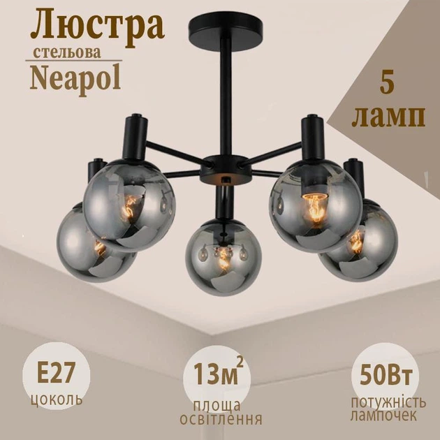 Люстра класична Ardero BL1550-1 Neapol на 5 плафонів E27 чорна 57х57х40см (BL1550-1)