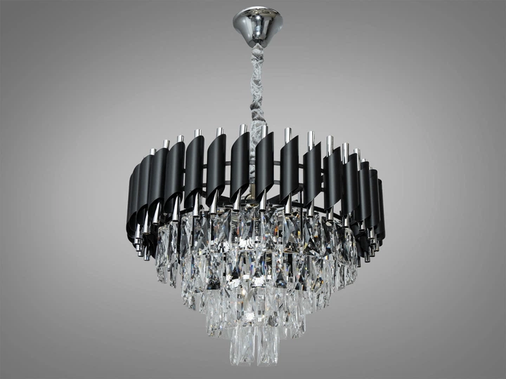 Кришталева люстра на 9 ламп чорний/хром 9001-500BK+CH