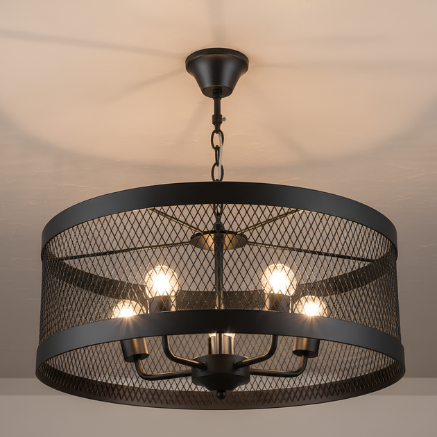 Підвісна люстра Sirius B S2459/5 BK із металевим сітчастим плафоном на 5 ламп E27 чорного кольору