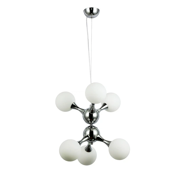 Люстра хром подвесная на шесть белых стеклянных плафонов Levistella 7529816-6 CR+WH