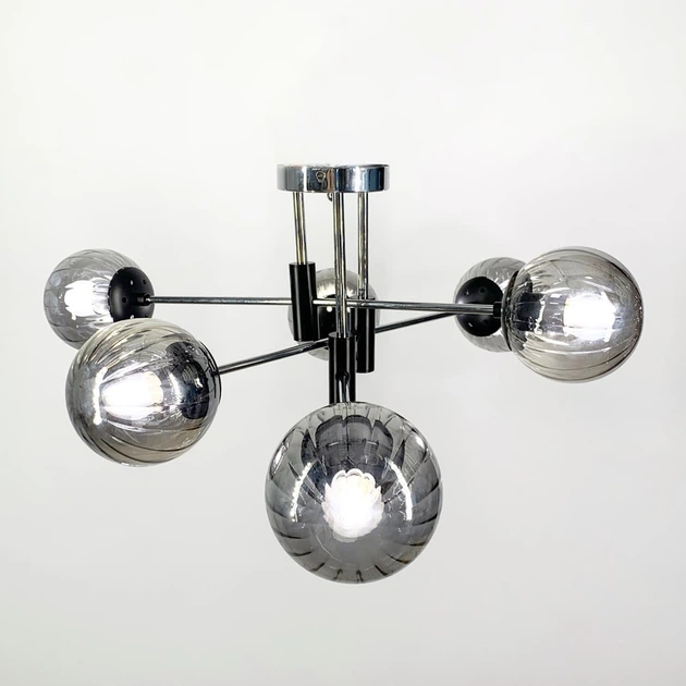 Люстра у хромованому корпусі на 6 графітових плафонів 70 см | Арт. 51797/6 CH+BK+GR | Line F