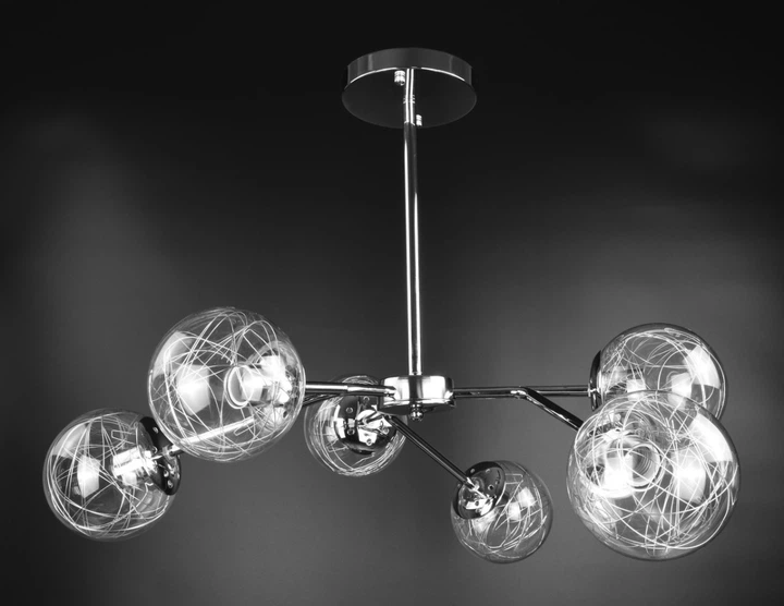Люстра стельова на 6 лампочок 26219 Хром 25-63х65х65 см.