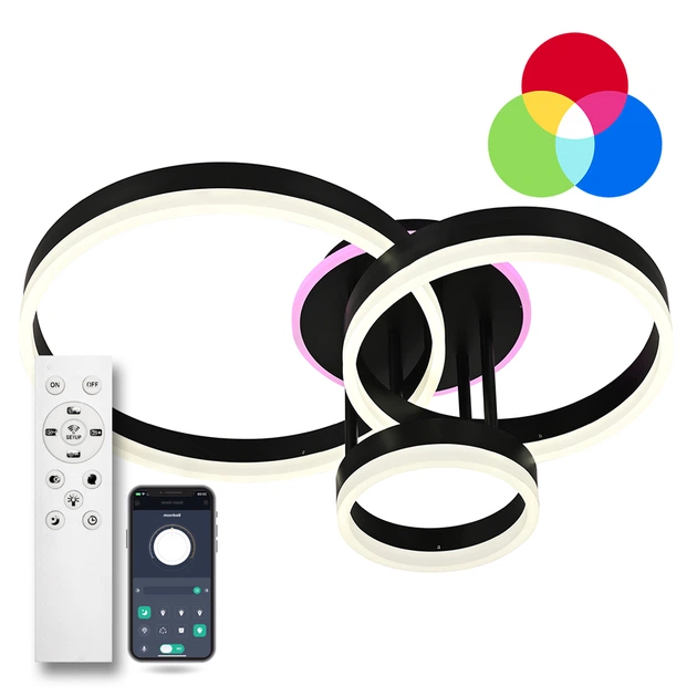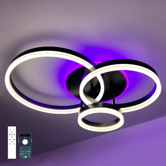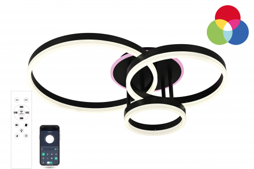 Керована світлодіодна люстра GENNY ROUND RGB 80W 4R BLACK Luminaria 8000 Lm з пультом і додатком для смартфону APP-220-IP20