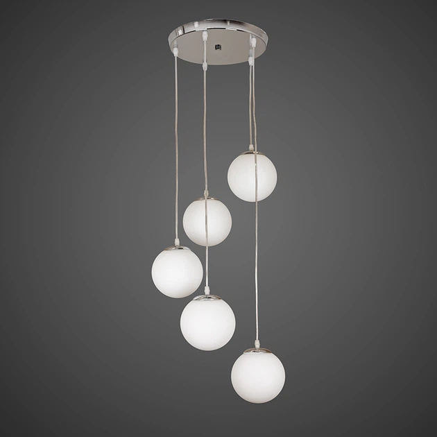 Срібна люстра з плафонами кулі (56-PR150F-5 CR+WH (290))
