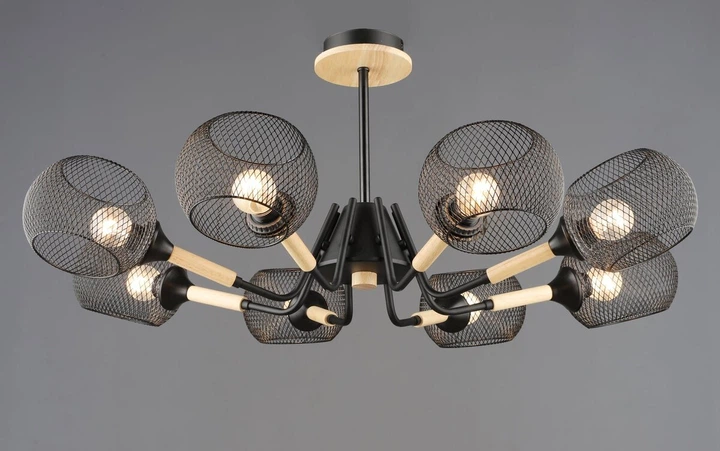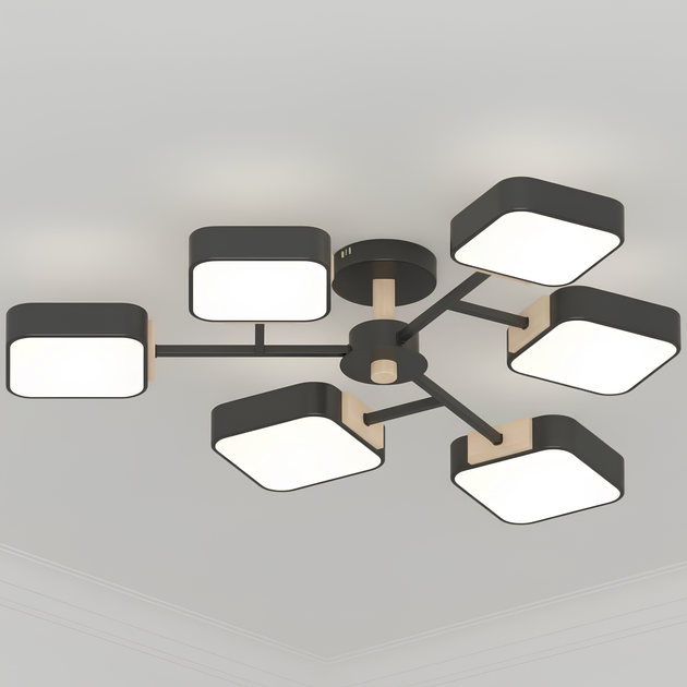Сучасна стельова LED-люстра 108W Valeso XI3363-6 із шістьма плафонами 3000/4200/6000K чорний металевий каркас із деревом