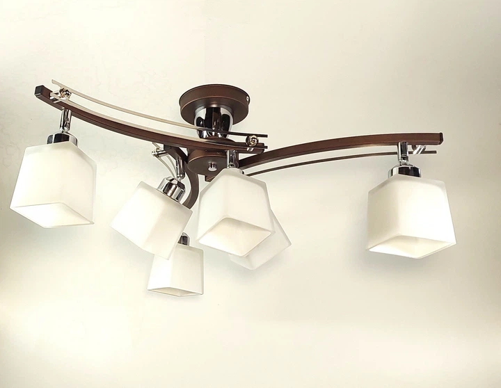 Люстра металева пристелева 3740/3+3 коричнева на шысть поворотних плафона