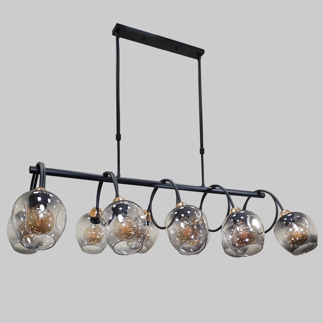 Чорна люстра планка на 10 ламп Molecule (52-L7915-10 BK+BR)