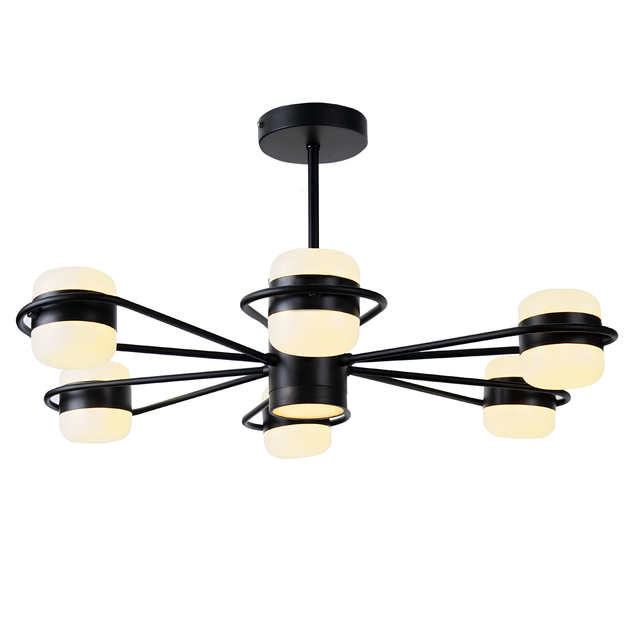 Світлодіодна стельова люстра 84W Sirius B N4557/6 BK із шістьма білими акриловими плафонами 3000–6500K на чорному корпусі