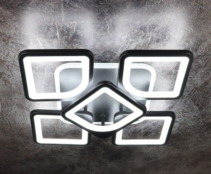 Люстра стельова LED з пультом (11х40х40 див.) Матовий чорний або білий YR-A2281/4+1S-RGB-bk