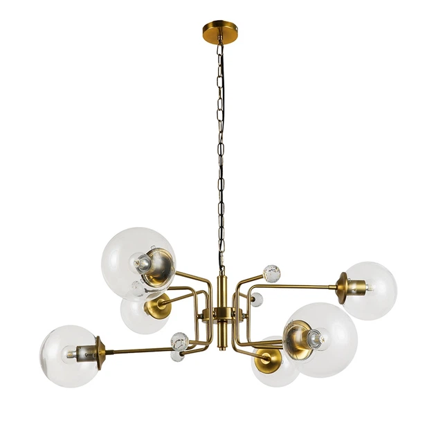 Підвісна бронзова люстра з прозорими плафонами на 6 ламп (909-XL3057-6 AB+CL)