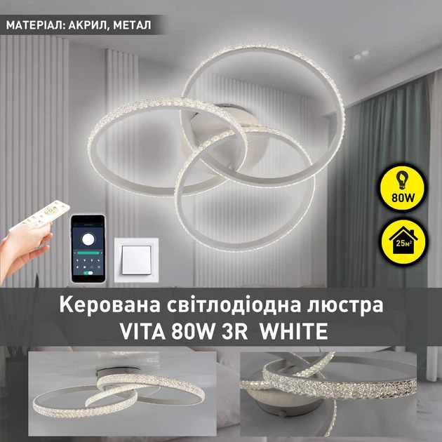 Керована світлодіодна Смарт люстра ESLLSE VITA 80W 3R 500x130мм Біла