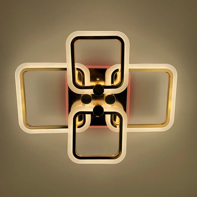 Золота LED люстра на 2+2 ріжки квадратної форми