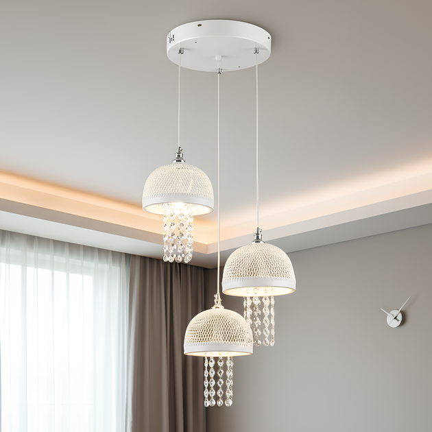 Кришталева люстра SVLIGHT триріжкова 31201/3 золото+білий
