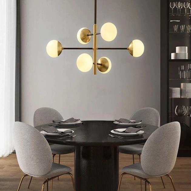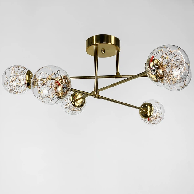 Люстра на 6 плафонів із латунною фурнітурою
