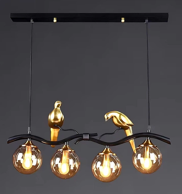 Люстра в стилі лофт з пташками на планці SVLIGHT на 4 лампочки 23916/4 чорний