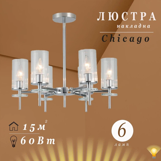 Люстра класична Ardero BL1760-3 Сhicago 6 плафонів E14 хром 52х52х47см (BL1760-3)