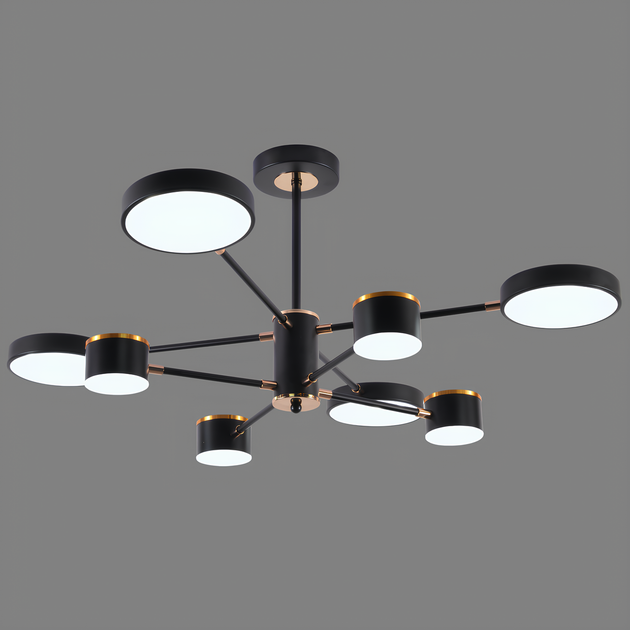 Сучасна світлодіодна люстра 132W Sirius B X13288/8 BK+FGD вісім плафонів 3000–6500K у чорно-золотому кольорі