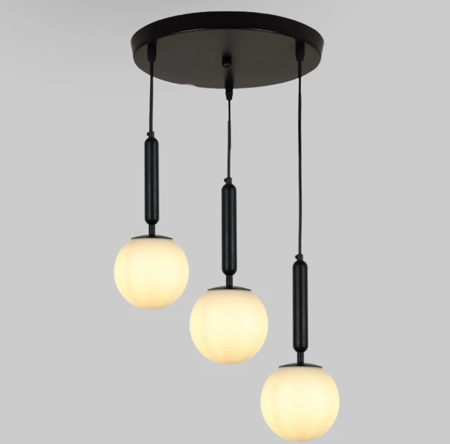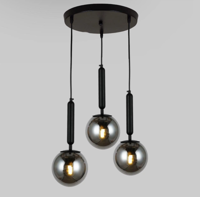 Чорна скляна люстра на 3 лампи (916-3515-3 BK+WH)