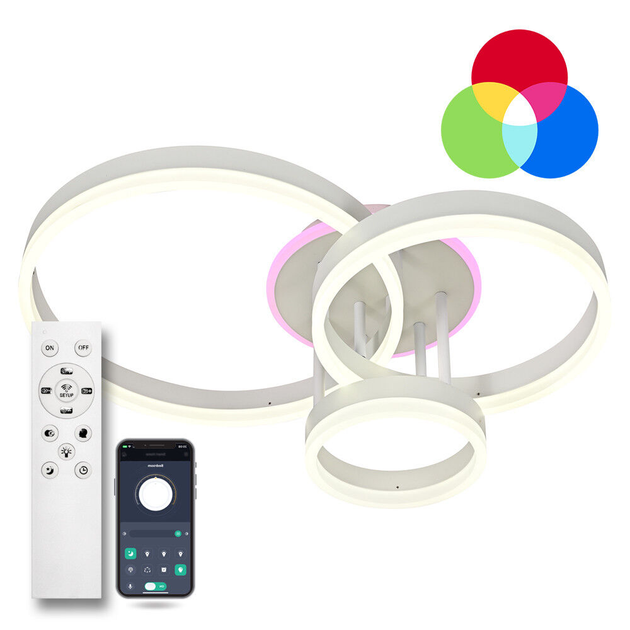 Світлодіодна люстра з ПДУ LUMINARIA GENNY ROUND RGB 80W 4R 3000-6500К+RGB 8000Лм WHITE 605x420х170мм
