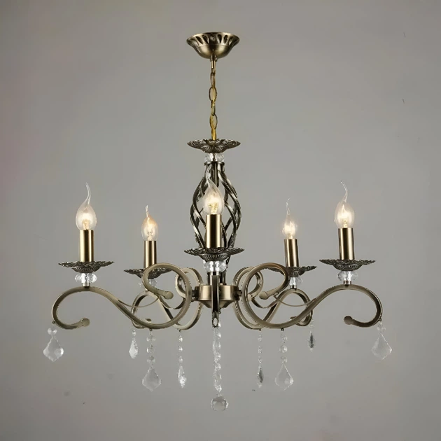Класична люстра підвісна Sirius N1208/5 на п'ять ламп E14 бронзовий каркас з кришталевими підвісами