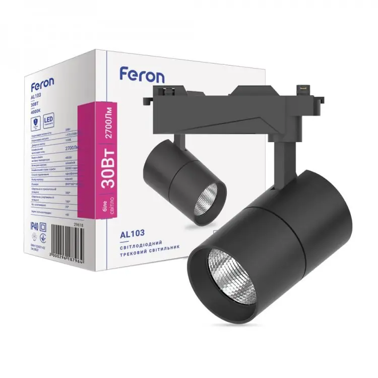 Світлодіодний трековий світильник Feron AL103, 30 Вт 4000K чорний (29618)