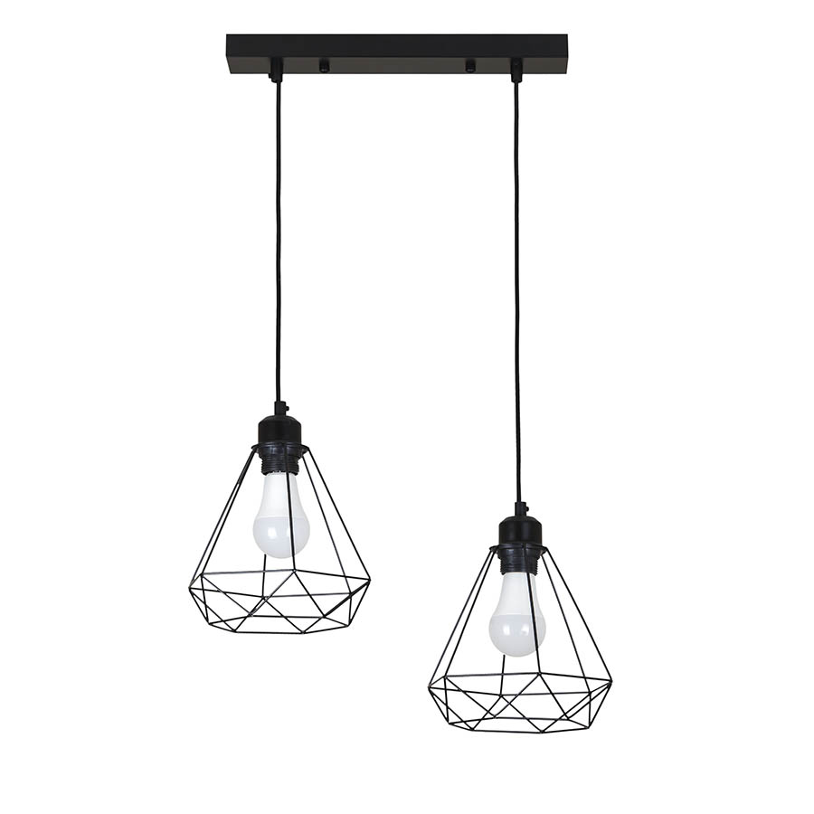 Підвіс в стилі лофт 7522019F-2 BK+BK (350) Розмір плафона: 200х190 мм Висота підвіса (макс.): 1000 мм (висота регулюється) Матеріал люстри: метал Колір люстри: чорний Кількість плафонів - 2 Кріплення - стельова планка 350мм Кріплення до стелі колір - чорний Матеріал кріплення - метал Джерело світла - 2 лампи Е27