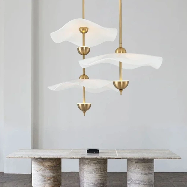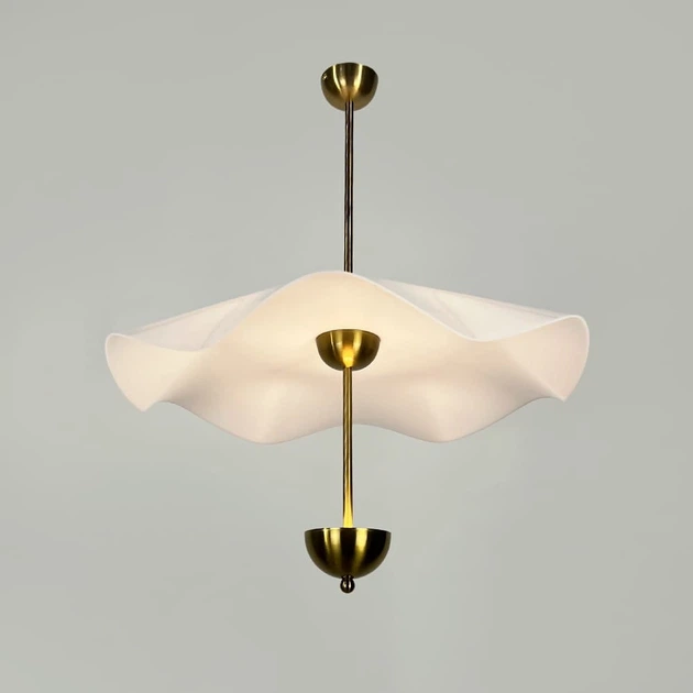 Латунний світильник із білим хвилястим плафоном 60 см | Line F | Арт. SGA3-600-1 AB