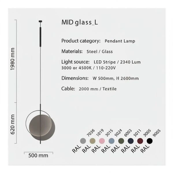 Підвісний світильник Babich MID glassL RAL1019 3000K, 30 Вт, 2340 лм, 3000K 6804