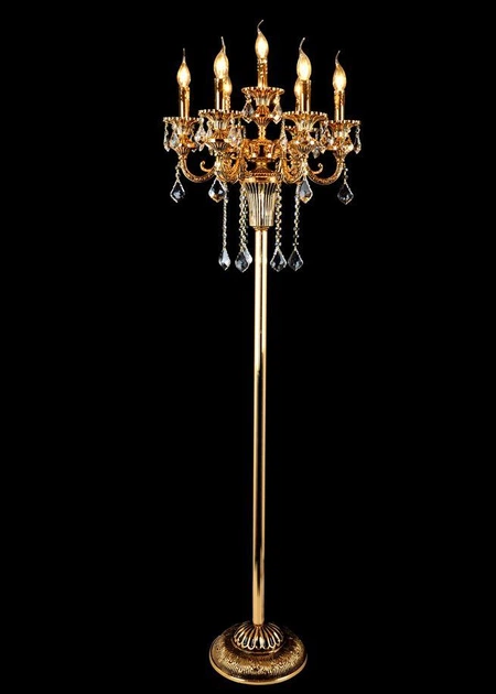 Торшер класичний із кришталевою підвіскою FORTUNA SJ-061-6+1 GD+BK