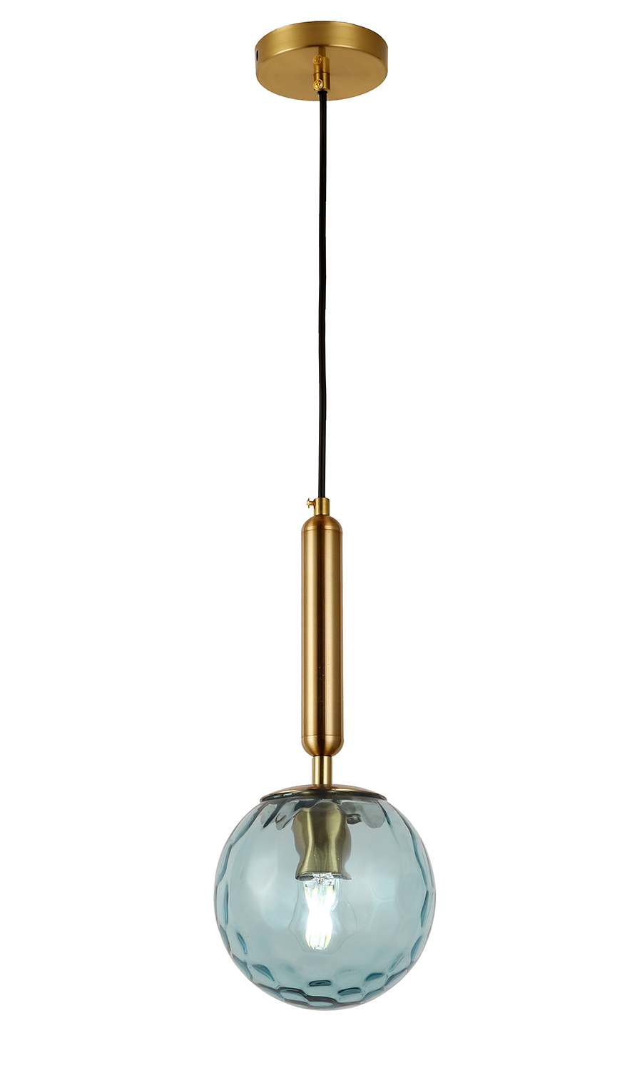 Підвіс в стилі модерн 91604-1 BL Матеріал - метал/скло Колір - бронза/блакитний Кількість плафонів - 1 Розмір - 150 мм Тип кріплення - стельовий коло Матеріал кріплення - метал Колір кріплення - бронза Джерело світла - 1 лампа Е27 Максимальна потужність лампочки - 60 W Можливість використання лампи LED, світлодіодна енергозберігаюча.