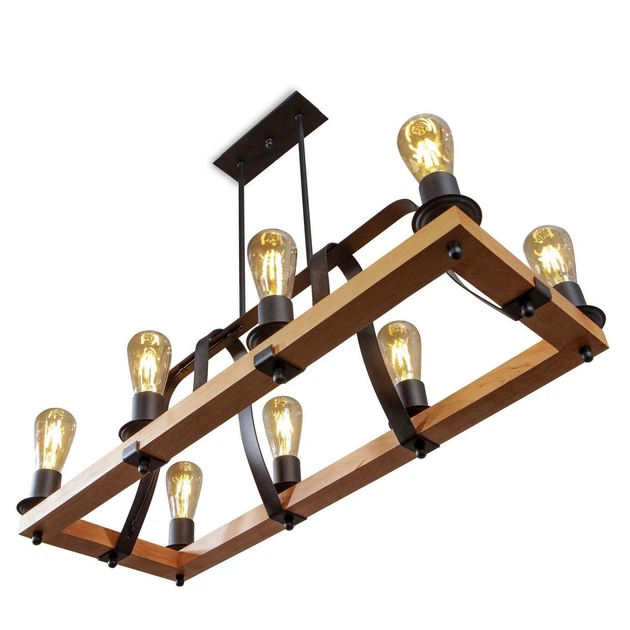 Люстра 8-ти лампова, металева з деревом у стилі лофт, модерн 50908