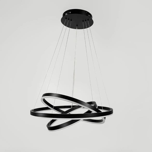 Світлодіодна люстра на три кільця у чорному каркасі 60+50+40 см