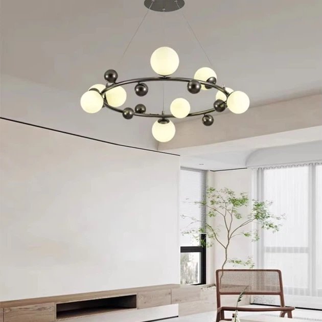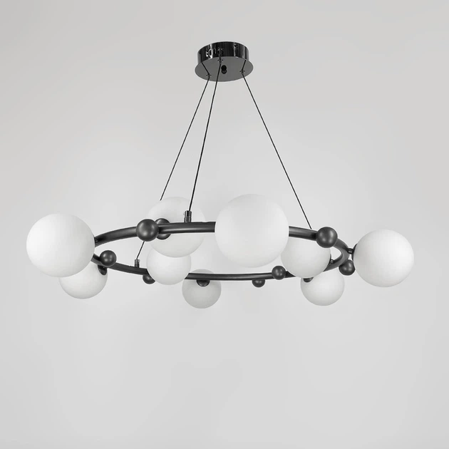 Кільцева люстра з 9 білими плафонами 85 см | Line F | Арт. MJ 295/9 BK+WT