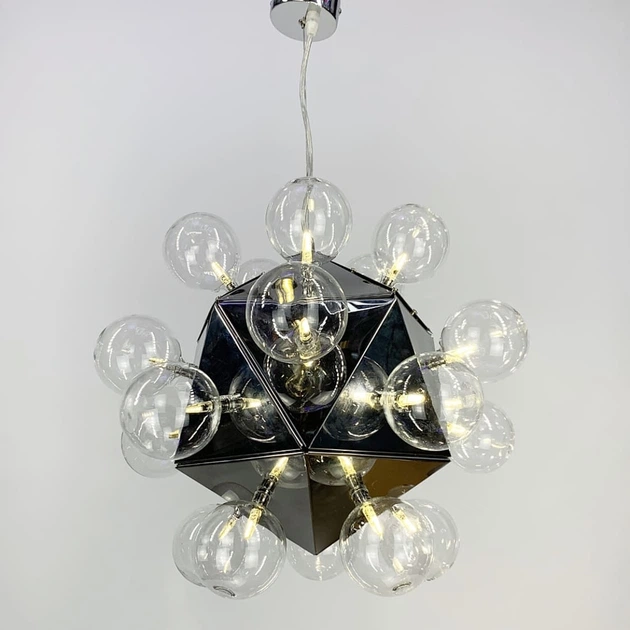 Люстра стельова молекула Light House DL-18971/8 чорна, плафон димчастий