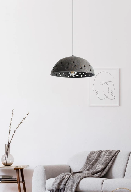 Чорна, дерев'яна люстра з декором ручної роботи, діаметр 32 см, висота 15 см (1239)