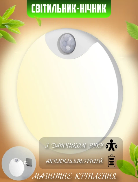 Світильник нічник на магніті настінний Лампа з датчиком руху та акумулятором UKC