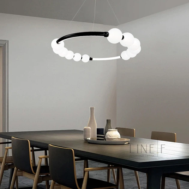 Чорна люстра Nordic Pearl з плафонами-перлинками на 3 режими | Line F | Арт. SG33-600 BK