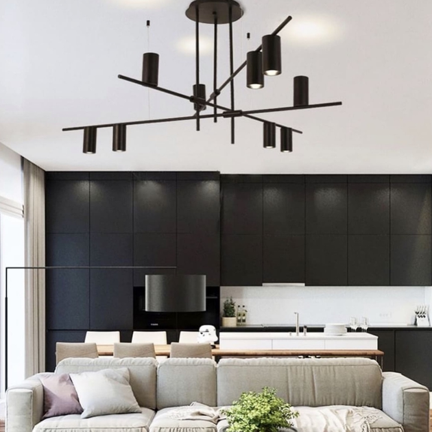Лінійна підвісна люстра на 9 плафонів-спотів чорного кольору Line.F MD 8021-9 BK+BK