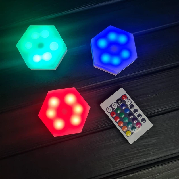 Модульна настінна світлодіодна RGB-лампа 3 шт. з живленням батарейок і пультом керування