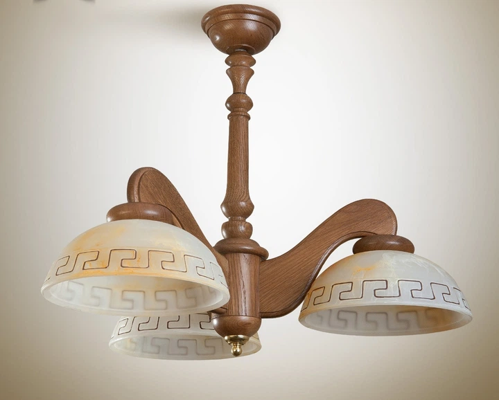Люстра в грецькому стилі дерев'яна на кухню, спальню 3-лампова 330