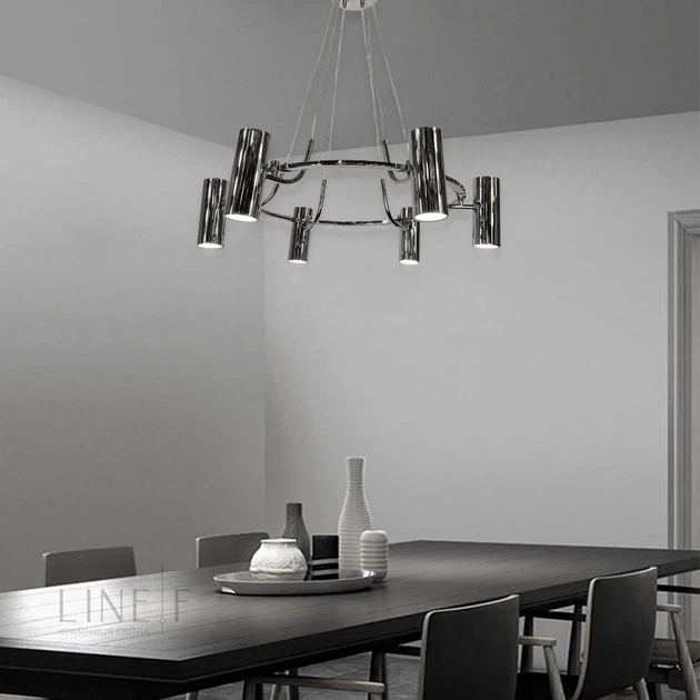 Підвісна срібна люстра ZION на 6 спотів Line.F MJ 129/6 CH